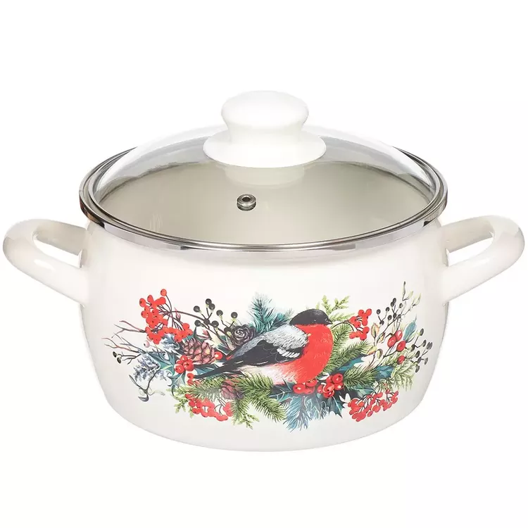 "Снегири" Кастрюля глубокая с метал. крышкой 3,1л