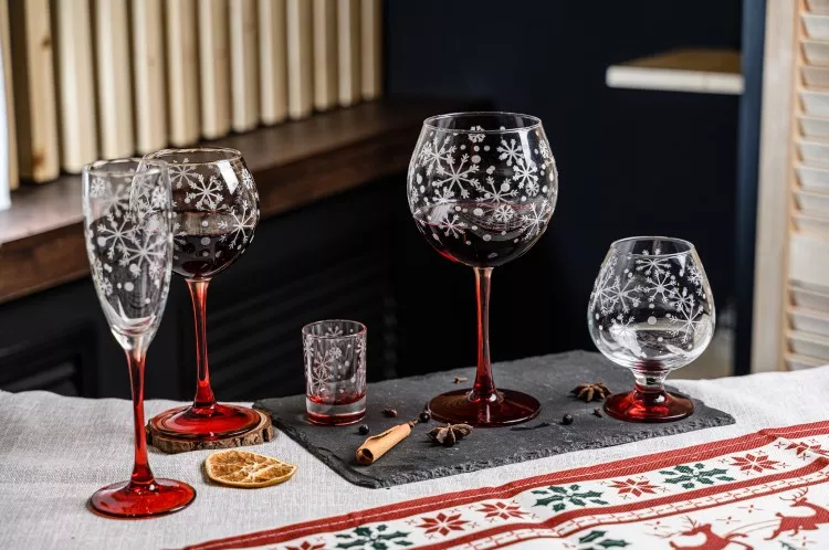 "Снегопад" Набор бокалов для шампанского 6шт. 210мл, цв.красный