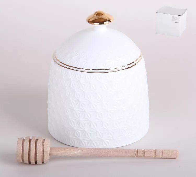 "Снежная королева" Банка для меда 380мл с бамбуковой ложкой