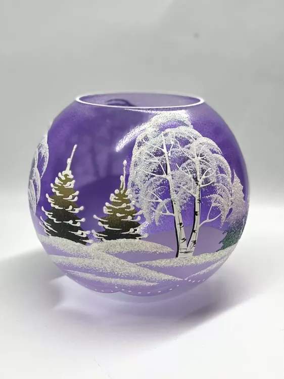"Снежный лес. Вечер" Ваза-шар D=18см H=16см