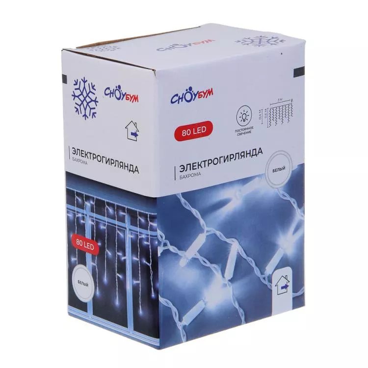 "СНОУ БУМ" Гирлянда электрическая "Бахрома" уличная 3х0,6х0,4м цв.белый холодный
