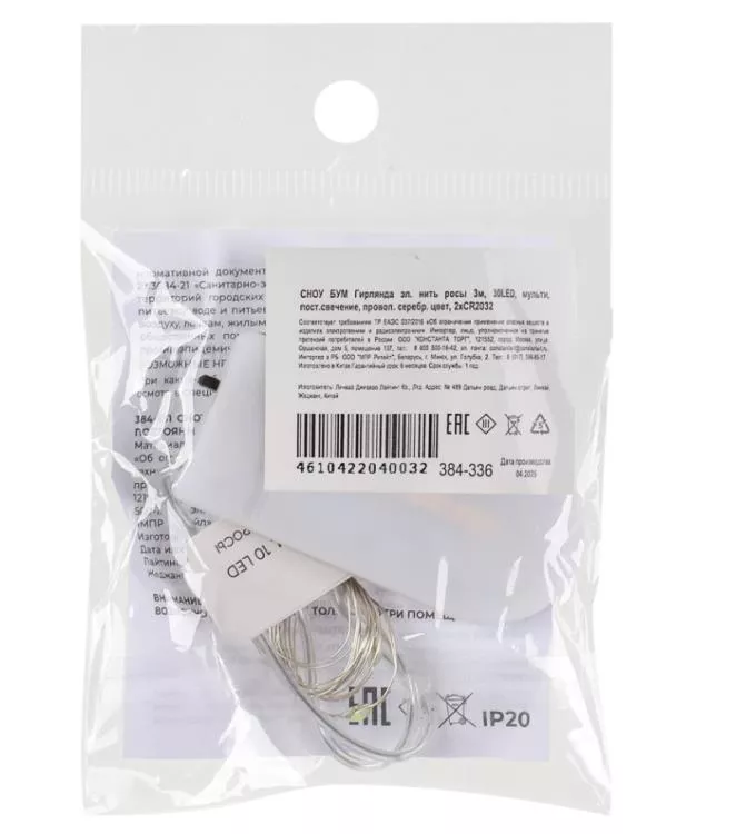 "СНОУ БУМ" Гирлянда электрическая "Нить росы" 3м цв.мульти