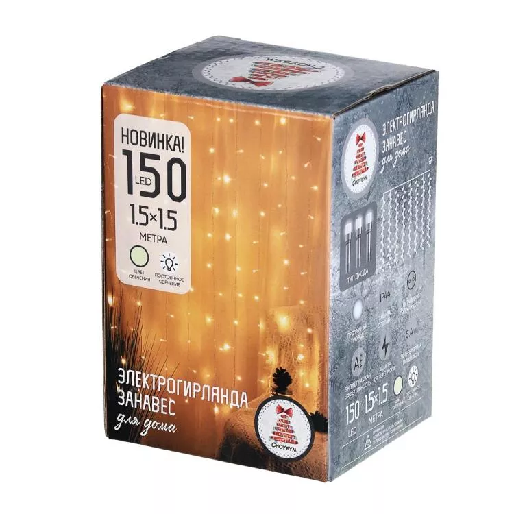 "СНОУ БУМ" Гирлянда электрическая "Занавес" 1,5х1,5м цв.шампань