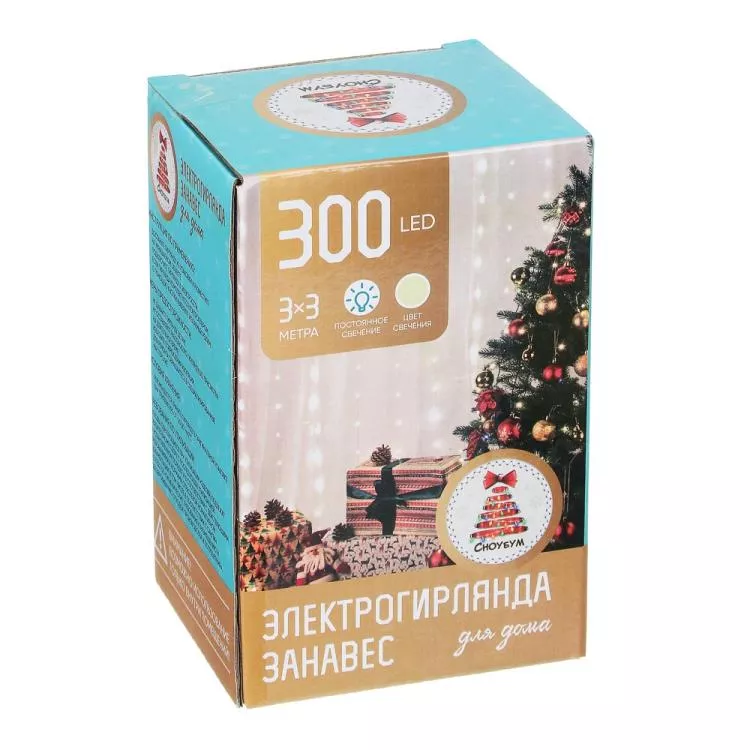 "СНОУ БУМ" Гирлянда-занавес электрическая постоянного свечения 3х3м, цв.теплый белый