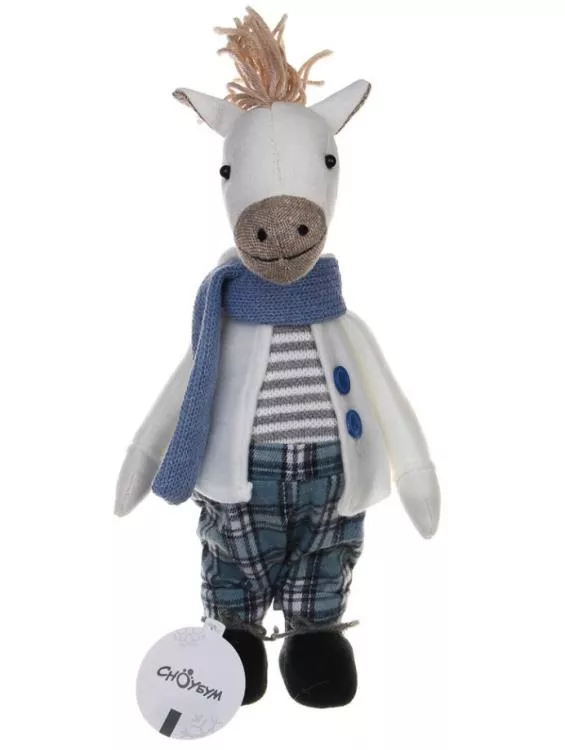 "СНОУ БУМ" Игрушка мягкая "Конь в клетчатых штанах" 13х12х30см