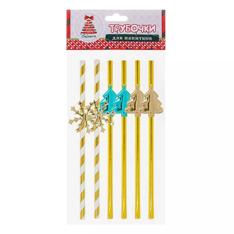 "СНОУ БУМ" Набор трубочек для напитков "Елочки и звездочки" 6шт 19,5см