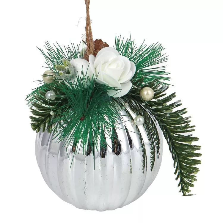 "СНОУ БУМ" Шар новогодний "Елочная шишка", цв.серебро