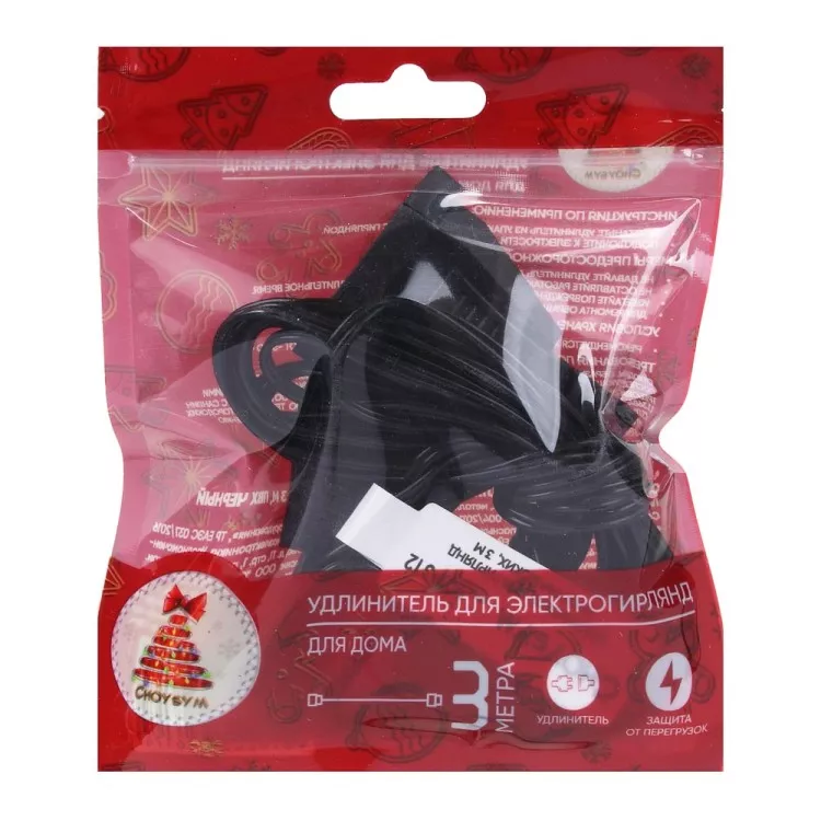 "СНОУ БУМ" Удлинитель для гирлянд цв.черный 3м