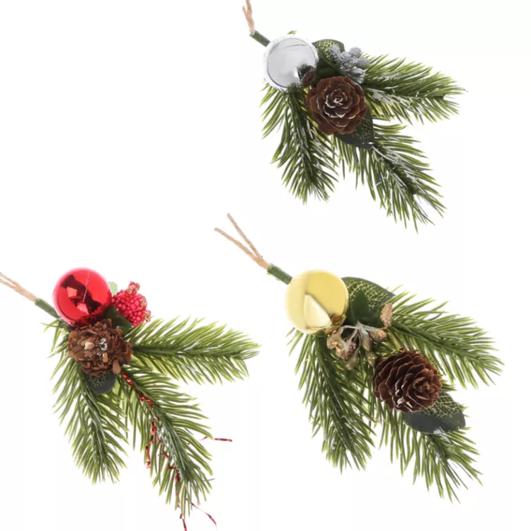 "СНОУ БУМ" Украшение декоративное подвесное "Елочная ветка с шарами и ягодами" 12см, 3в.