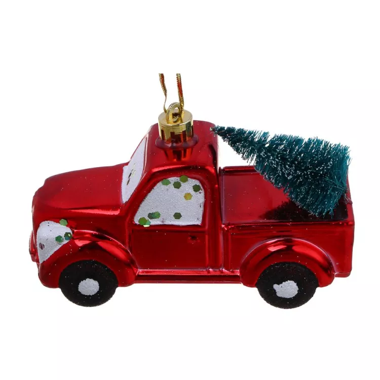 "СНОУ БУМ" Украшение декоративное подвесное "Машинка с елочкой" 5х8х11см, цв.красный
