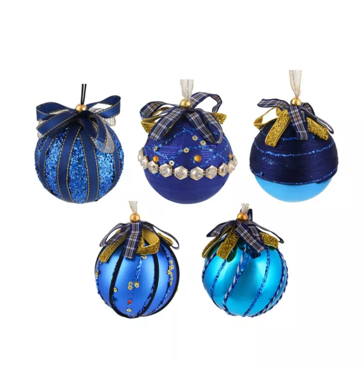 "СНОУ БУМ" Украшение декоративное подвесное "Шар" 8см, цв.синий с золотом, 5в.