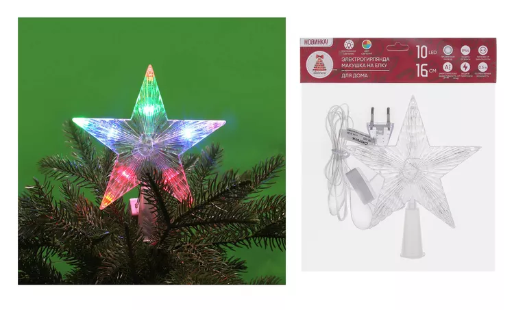 "СНОУ БУМ" Верхушка на елку электрическая "Звезда" 16см цв.мульти