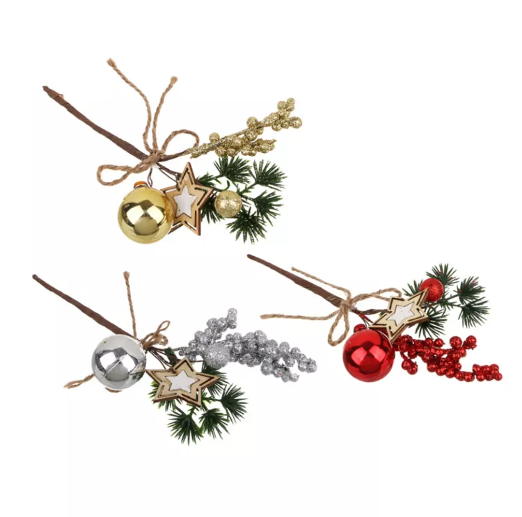 "СНОУ БУМ" Ветка новогодняя "Звезда с шаром и ягодами" 16см, 3в