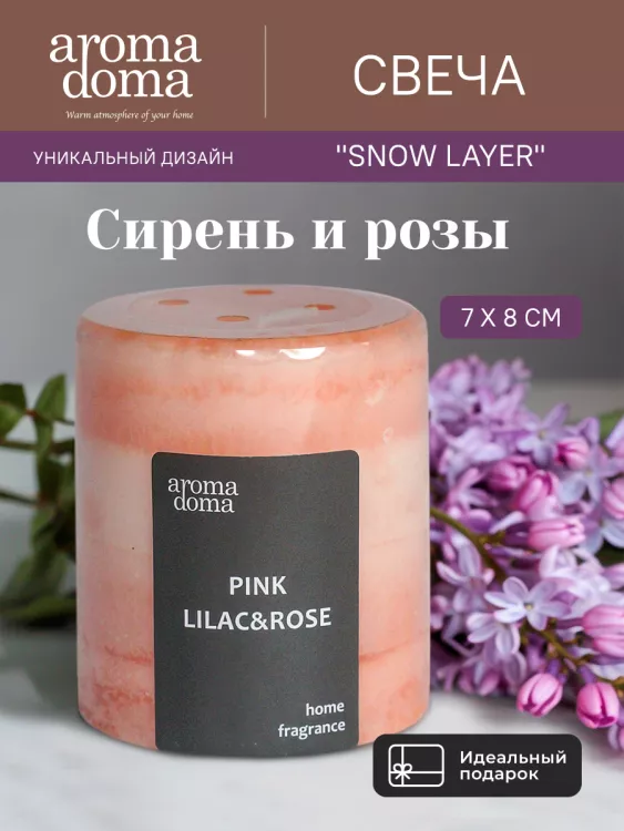 "Snow layer" Свеча "Сирень и розы" 7х8см