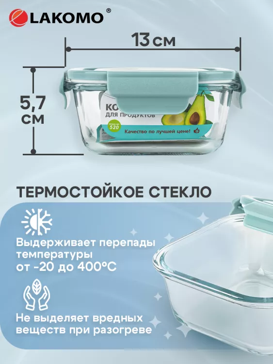 "Soft color" Контейнер стекло 0,52л квадр. 13х5,7х13,2см.