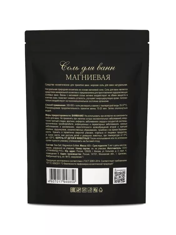 Соль для ванны "Greenfield магниевая" 600гр