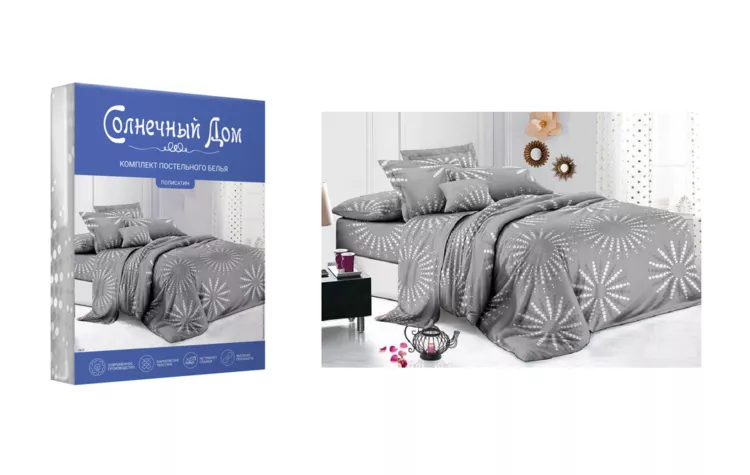 1 простыня 220/240см, 1 пододеяльник 200/220см, 2 наволочки 50/70см