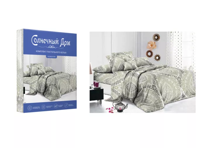 1 простыня 220/240см, 1 пододеяльник 200/220см, 2 наволочки 50/70см