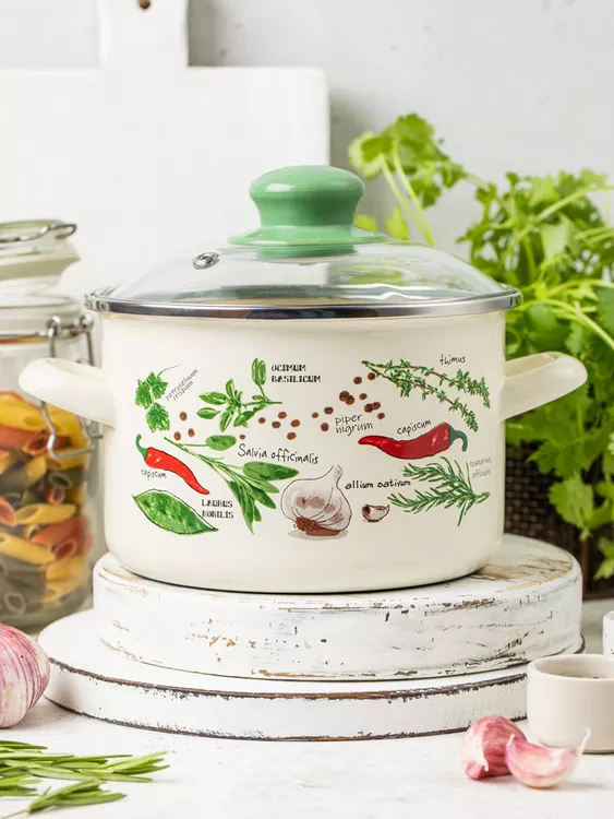 "Специи" Кастрюля глубокая со стекл. крышкой 5л