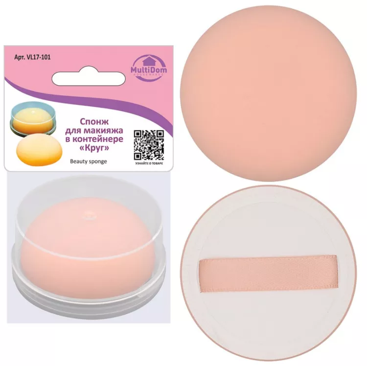 Размеры: спонж 5,5х1см; контейнер 6,5х2,5см.