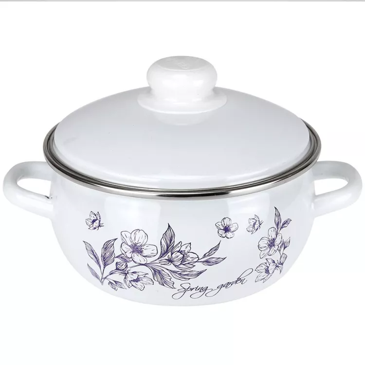 "Spring garden" Кастрюля эмалированная 4л, цв.белый
