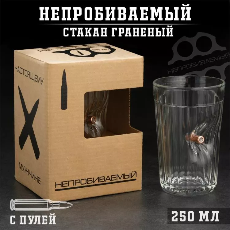 Стакан граненый "Непробиваемый" с пулей 250мл