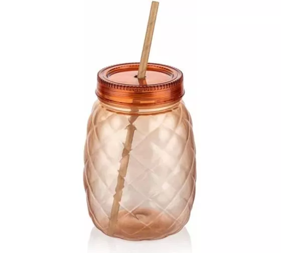 Стакан "Pineapple" с крышкой и трубочкой 600мл, цв.коричневый