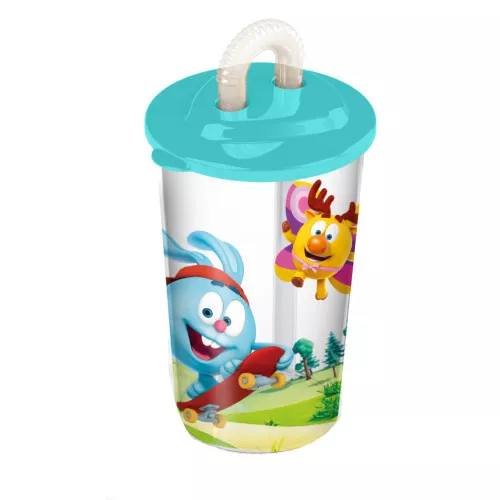 Стакан "Смешарики" с крышкой и трубочкой 400мл