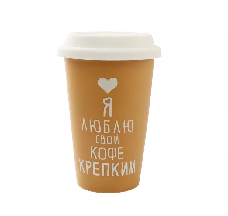 Стакан "Я люблю кофе крепким" 380мл с силик.крышкой