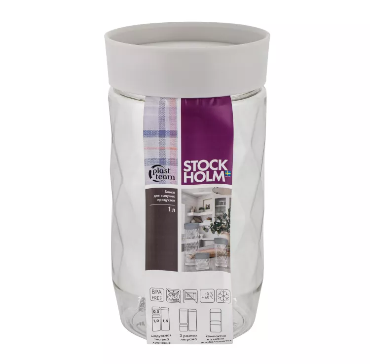 "STOCKHOLM" Банка с закручивающейся крышкой 1л, цв.пепельный жемчуг