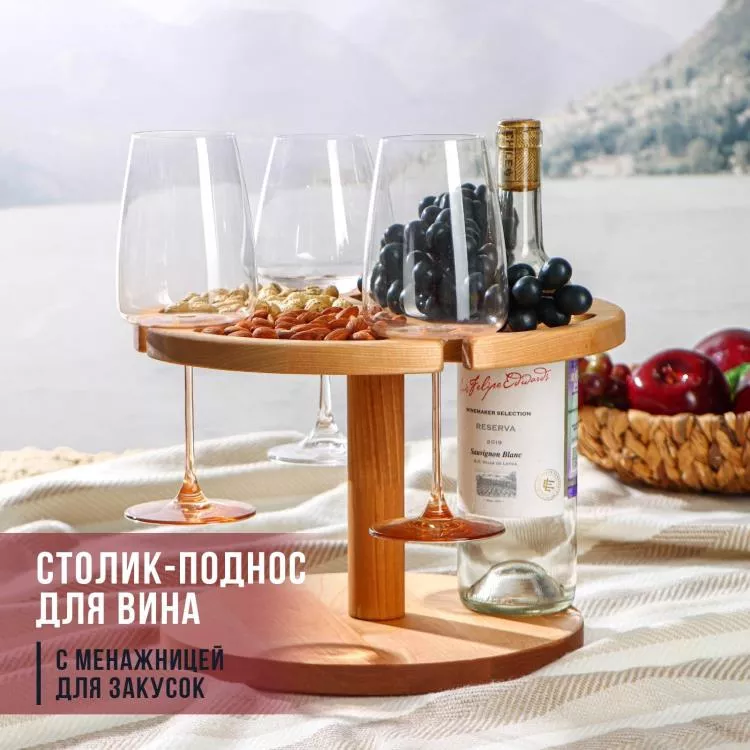 Столик-поднос для вина "Adelica" d=35см с менажницей на 3пер