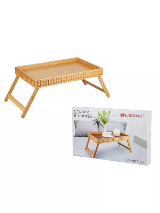 Бамбуковый столик в постель — это стильное и многофункциональное решение для вашего дома. Выполненный из прочного и легкого бамбука, он гарантирует долговечность и удобство в использовании. Устойчивый дизайн с резными бортиками и ручками предотвращает сос...