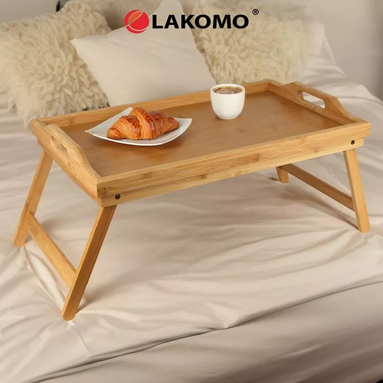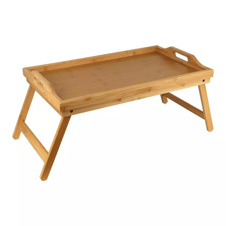 Деревянный столик из бамбука - идеальное решение для сервировки завтрака в постели. Складной и легкий, он оснащен удобными ручками для легкого переноса и устойчивыми ножками, которые обеспечивают стабильность на любой поверхности.