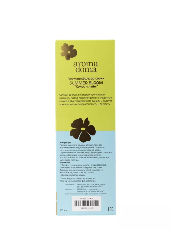 "Summer bloom" Аромадиффузор "Кокос и лайм" 150мл
