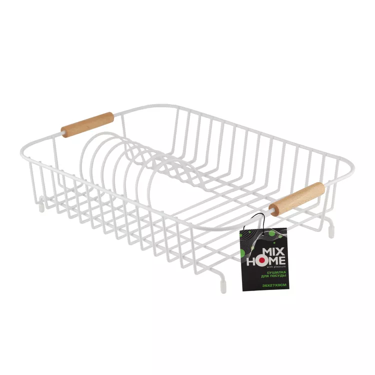 Сушилка для посуды сочетает в себе функциональность и современный дизайн. Металлическая конструкция с белым покрытием и деревянными ручками придает ей стильный вид в стиле лофт, идеально вписываясь в любую кухню.