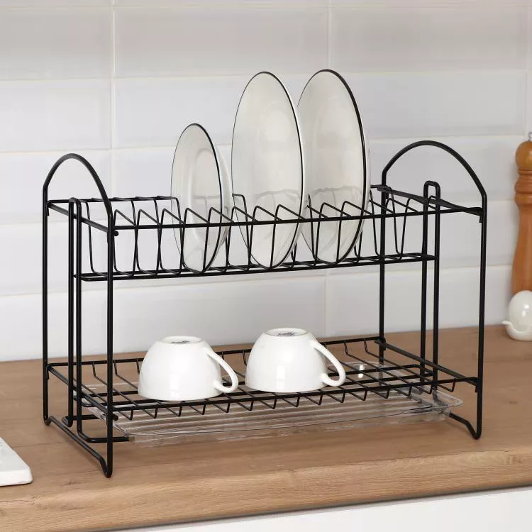 Сушилка для посуды с поддоном 2-х ярусная 39,5х24х29,5см, цв.черный