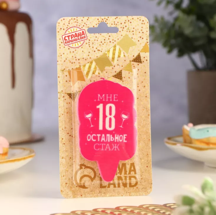 Свеча для торта "Мне 18 остальное стаж" 6,5см