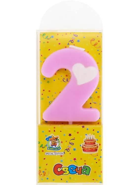 Свеча для торта "С сердечком" Цифра "2"