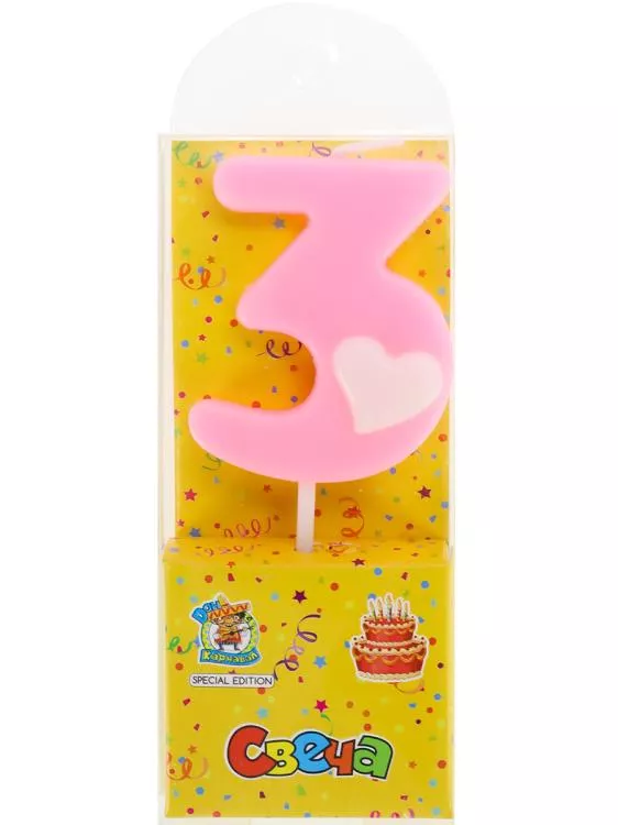 Свеча для торта "С сердечком" Цифра "3"