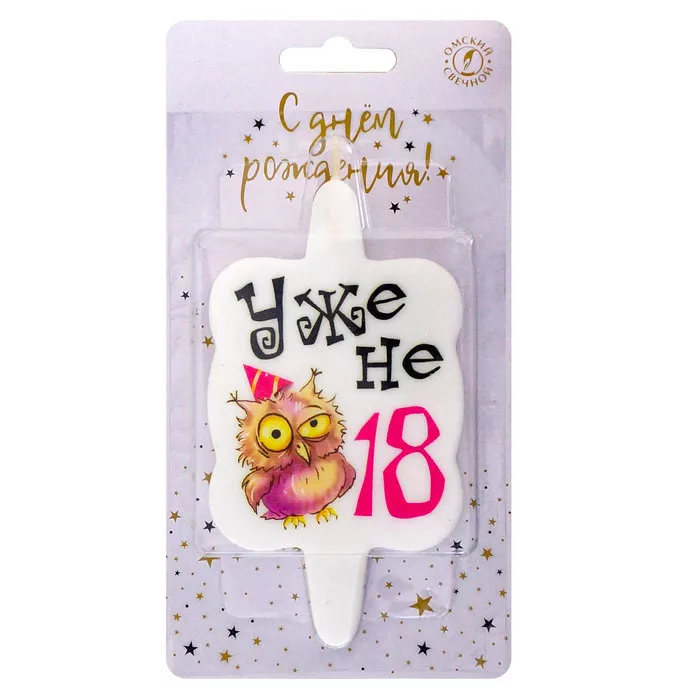 Свеча для торта "Уже не 18" 6,5х11,4см, цв.белый