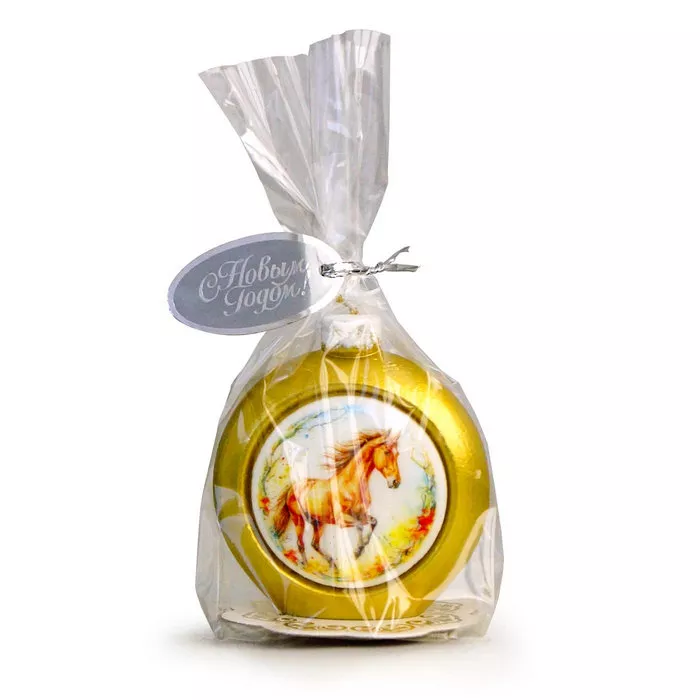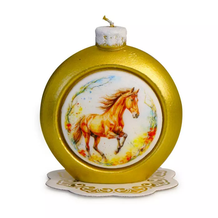 Свеча-шар "Лошадка" 6,8х3,5х7,5см, цв.золотой