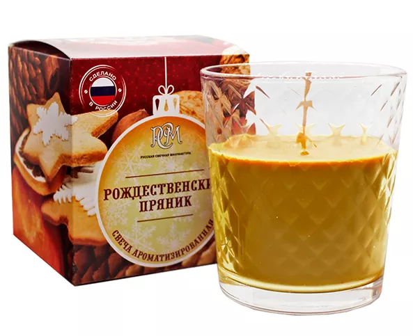 Свеча в стекле "Рождественский пряник" 130гр 8,4х7,8см