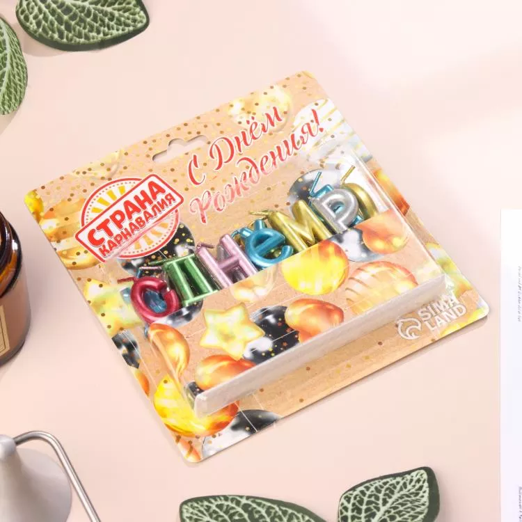 Свечи для торта "С Днём Рождения" 3см, в ассорт.