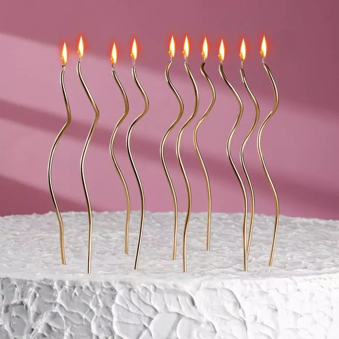 Свечи для торта "Серпантин" 10шт, цв.золотой