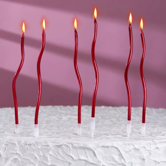 Свечи для торта "Серпантин" 6шт, цв.рубиновый