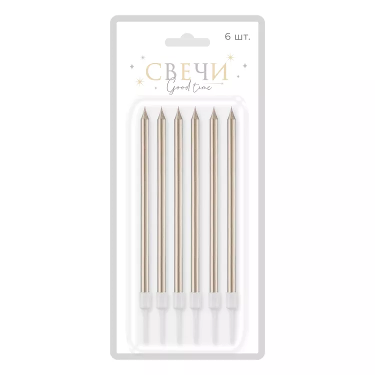 Свечи для торта "Стильные" 6шт, цв.металлик