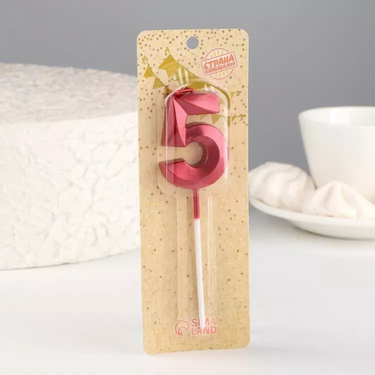 Свечи для торта "Цифра 5", цв.красный