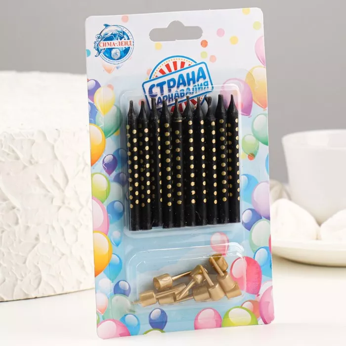 Свечи для торта "Золотая горошина" 10шт, цв.черный