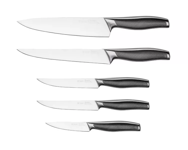 нож поварской 20,5 см - 1шт., нож для нарезки 21,0 см - 1 шт., нож универсальный 13,5 см - 2 шт, нож для чистки 10,0 см - 1 шт, подставка -...