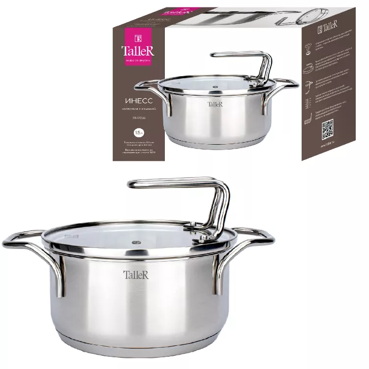 "TalleR" Инесс" Кастрюля со стеклянной крышкой 1,5л